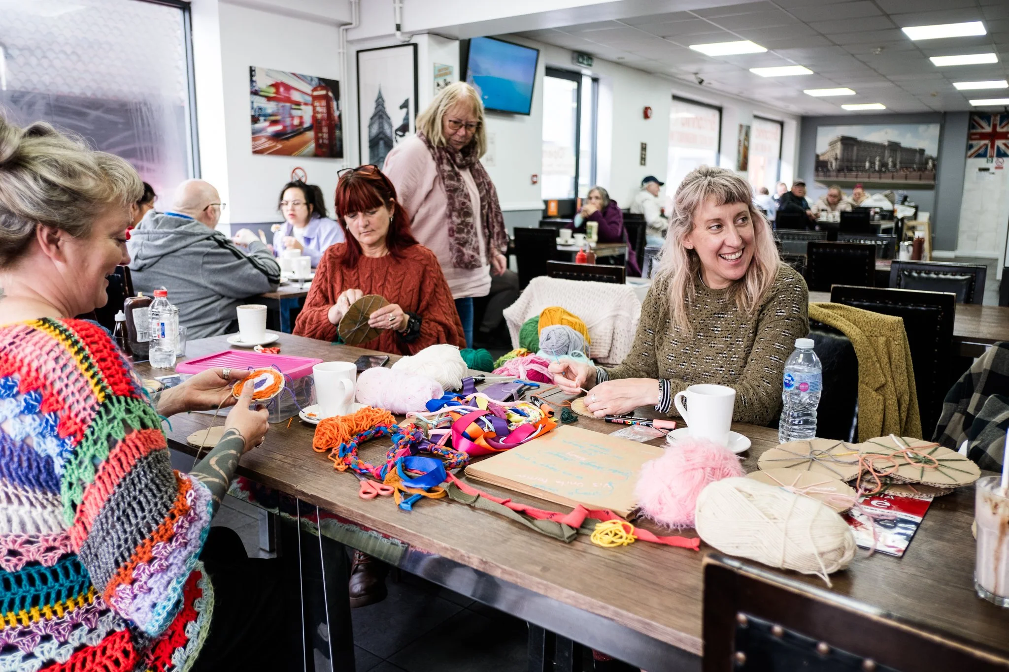 The Threads of Kindness project invited community volunteers to make handmade gifts for café owners in Longton who had moved to the town from elsewhere. Using simple, shared making, the project created space for conversation, welcome and relationship-building, strengthening connections across the town centre.